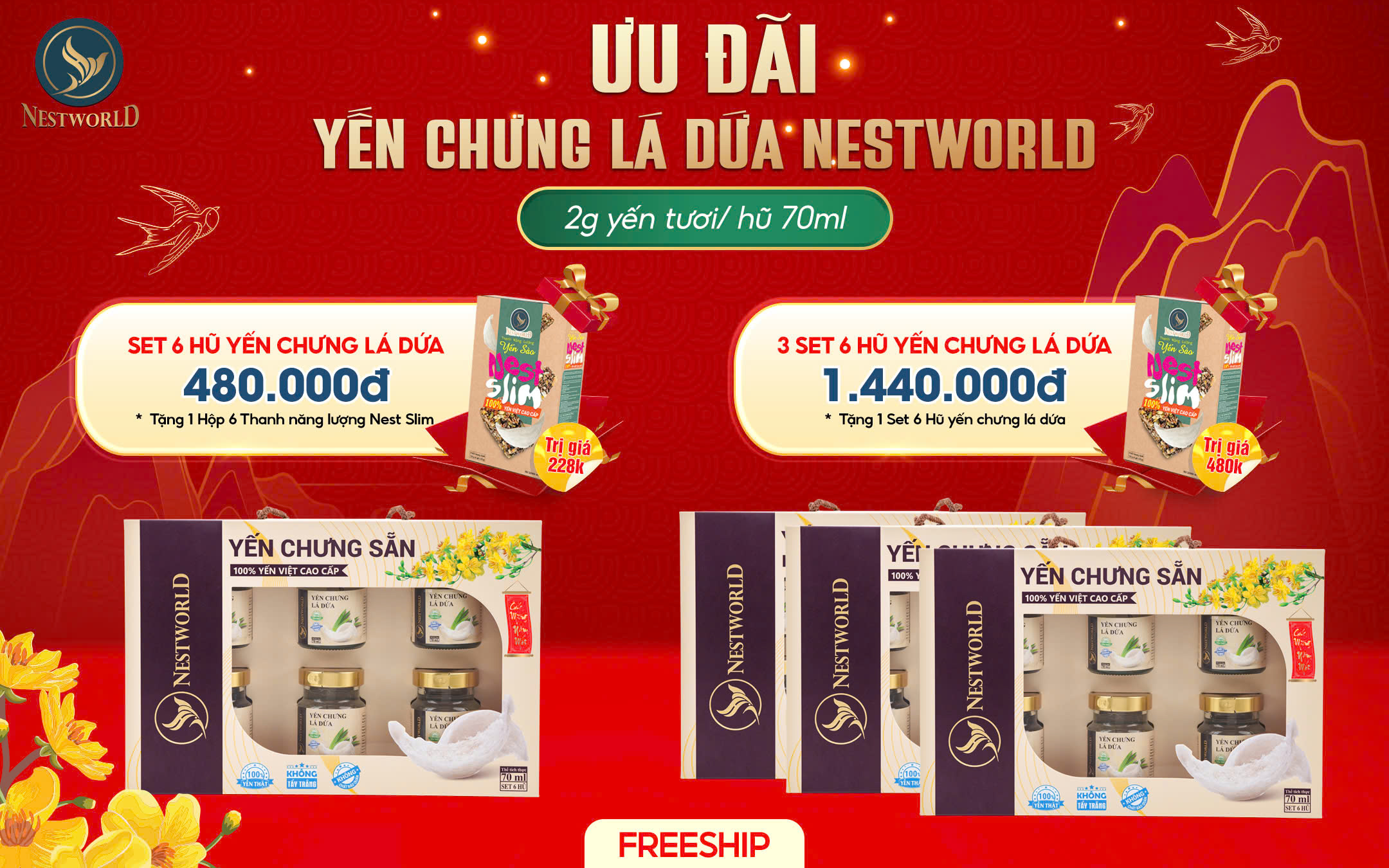 [2 Combo 6 Hộp] – Tổ Yến Sấy Nguyên Chất Ăn Liền Nestworld