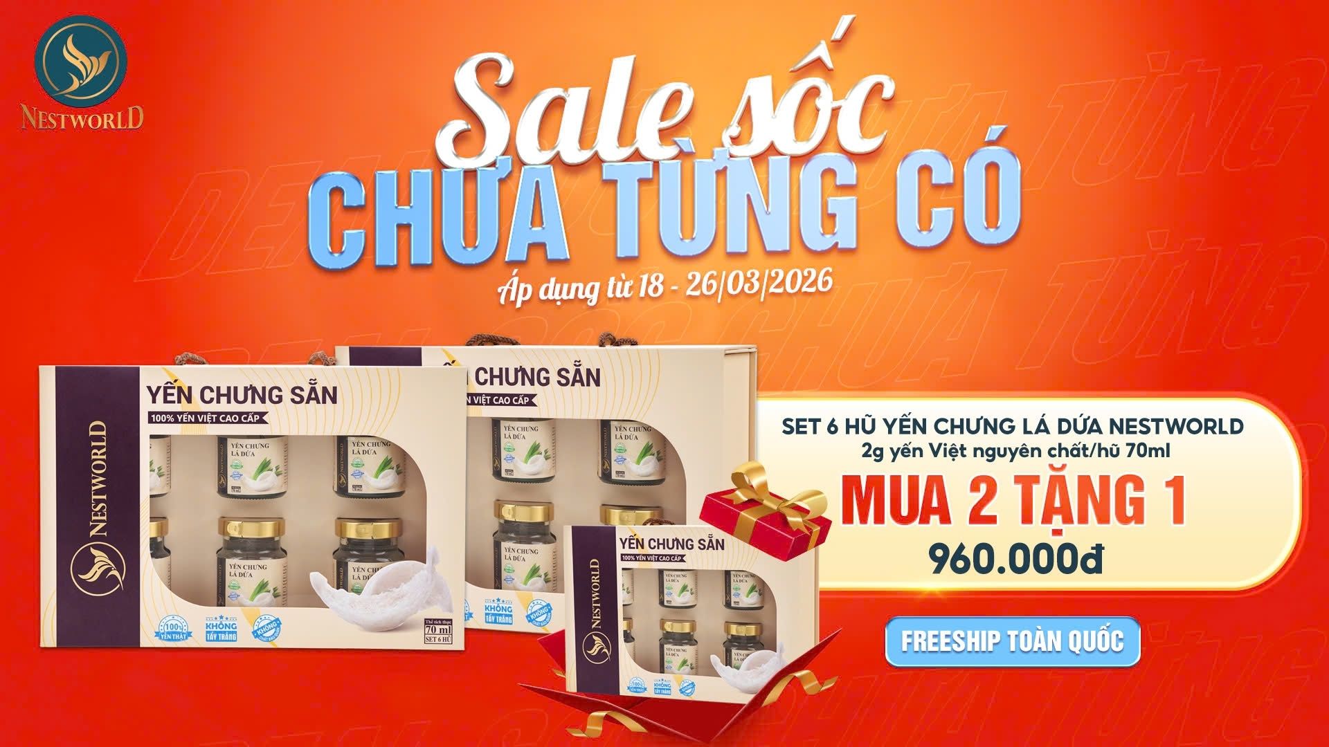 [Combo 3 Tặng 1] – Tổ Yến Sấy Nguyên Chất Ăn Liền Nestworld