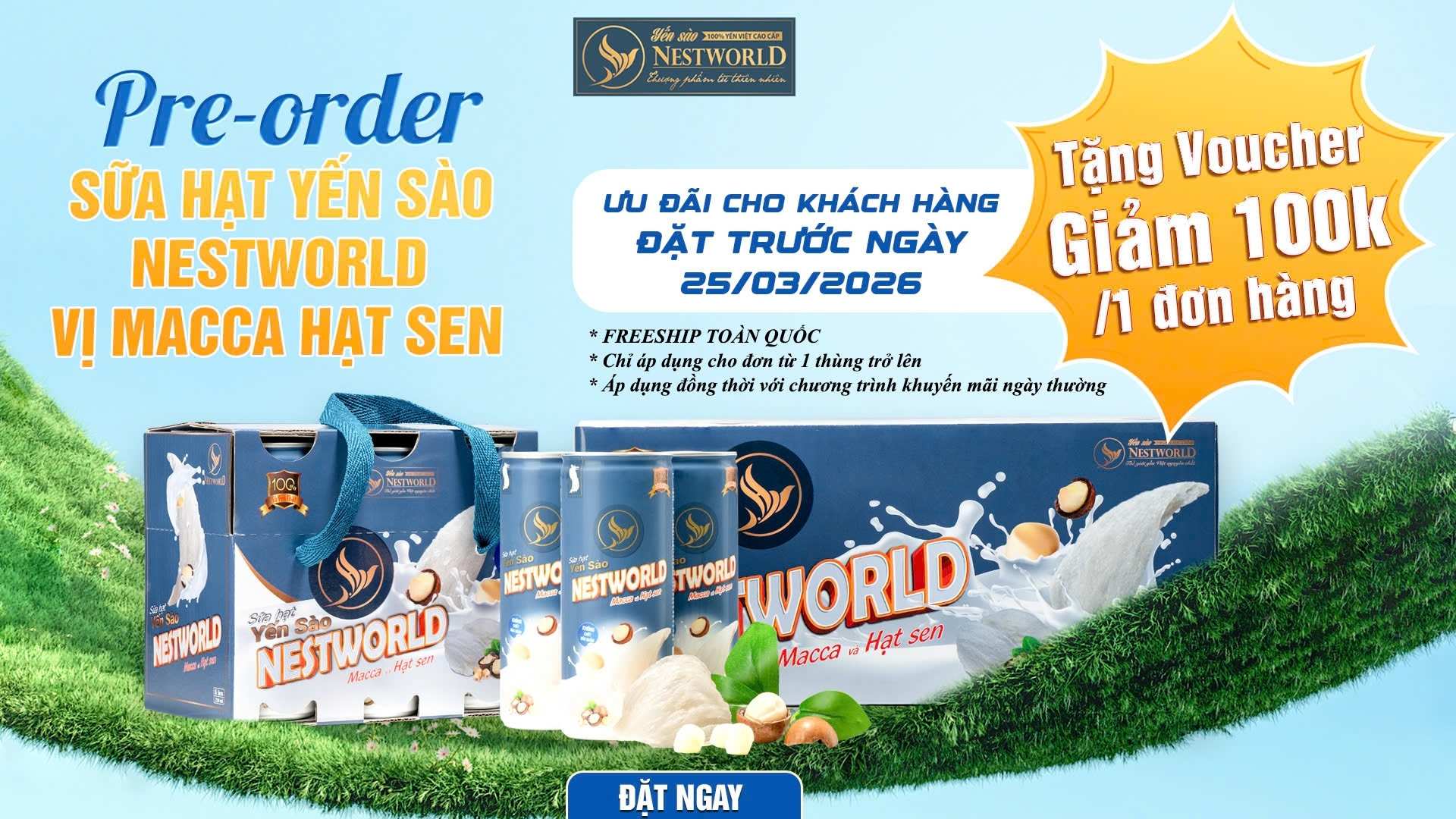 [Thùng 24 Lon] – Sữa Hạt Yến Sào Nestworld Macca Và Hạt Sen