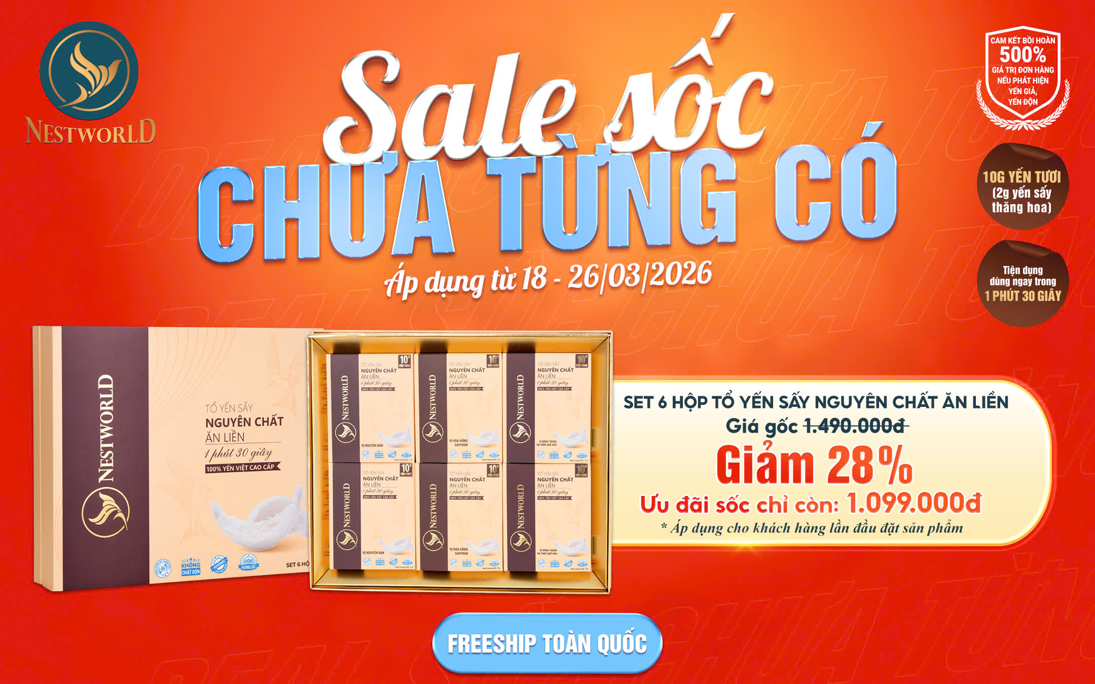 [Combo 6 Hộp] – Tổ Yến Sấy Nguyên Chất Ăn Liền Nestworld