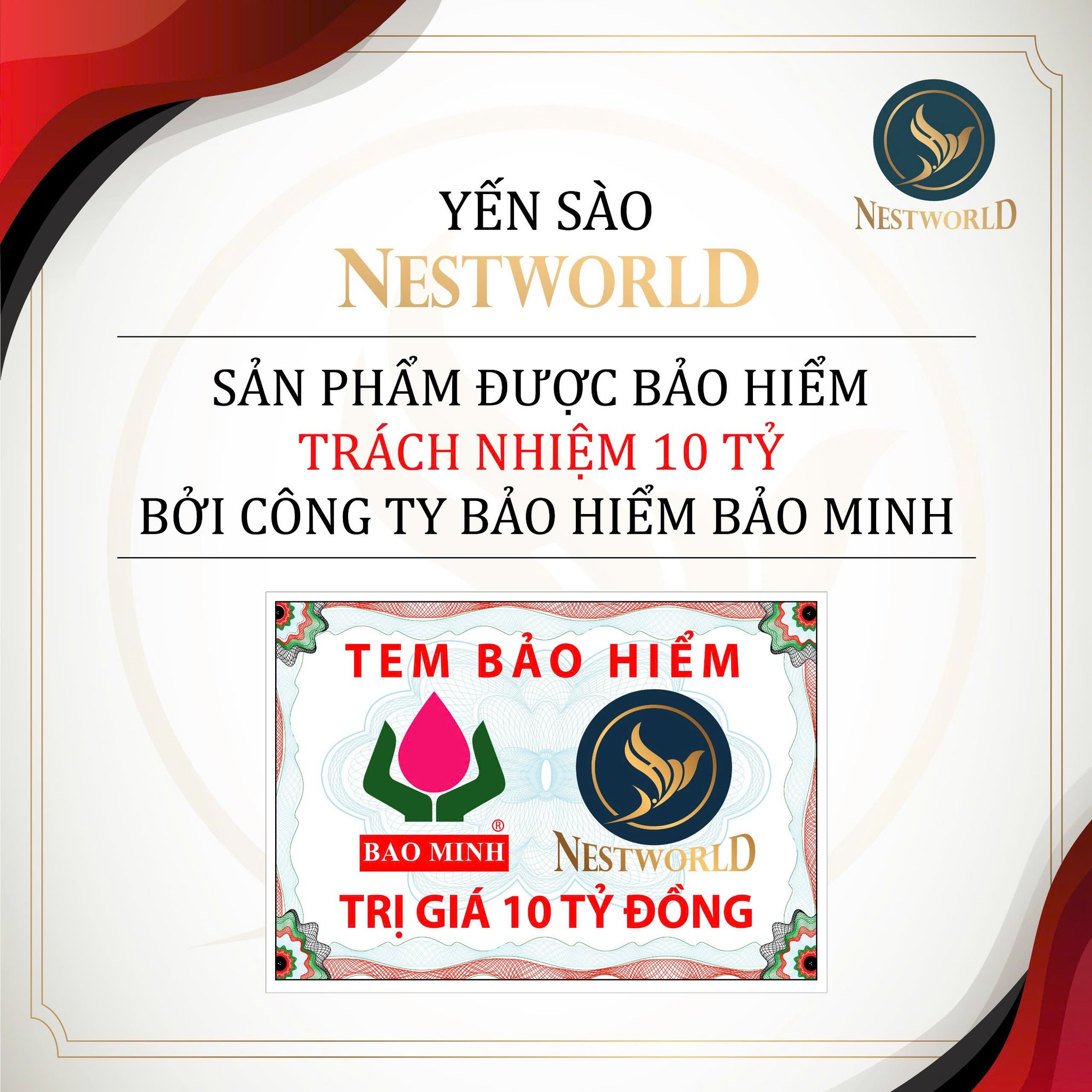 Ngoài các chứng nhận An toàn thực phẩm, các sản phẩm yến sào Nestworld còn được Công ty Bảo hiểm Bảo Minh – Chi nhánh Đà Nẵng chấp thuận bảo hiểm trách nhiệm sản phẩm lên đến 10 tỷ đồng/vụ.