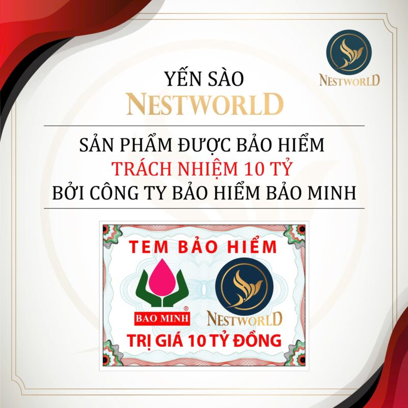 Đây là mức bảo hiểm cao, thể hiện sự tin tưởng và minh bạch trong quy trình sản xuất, đồng thời khẳng định rằng người tiêu dùng hoàn toàn có thể yên tâm khi lựa chọn yến sào Nestworld. Bất kỳ thiệt hại hoặc khiếu nại nào phát sinh từ phía bên thứ ba đều sẽ được xem xét và bồi thường theo quy định, góp phần bảo vệ tối đa quyền lợi của khách hàng.