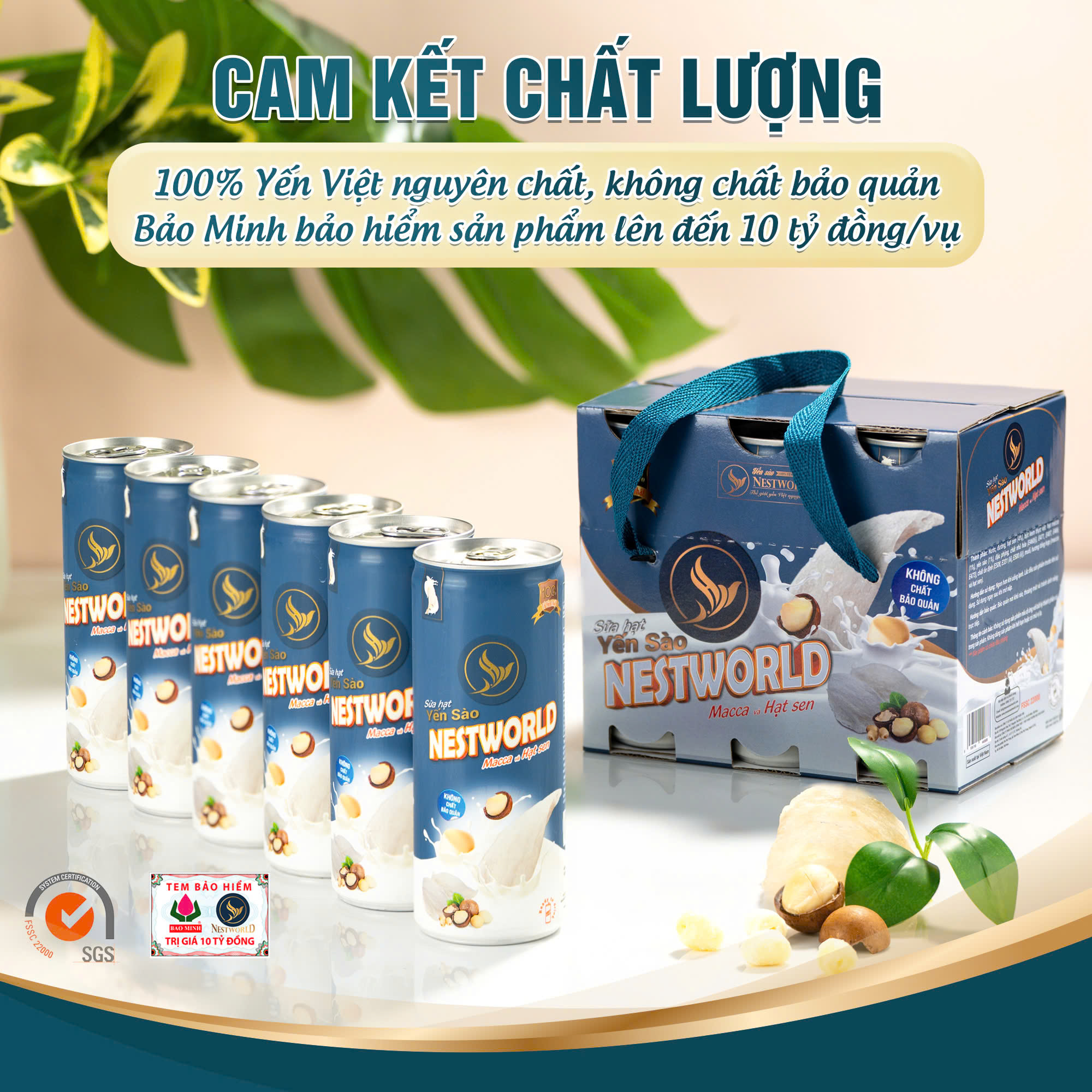 Mọi chi tiết về Sữa hạt Yến sào Nestworld Macca và Hạt sen, Quý khách vui lòng liên hệ: