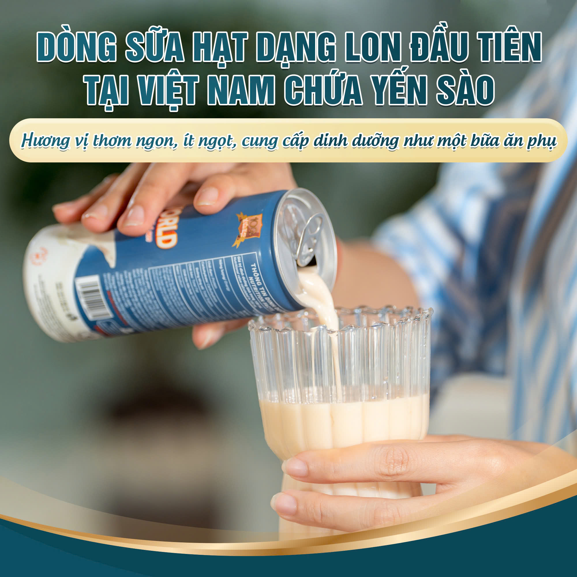 Đây là dòng sữa hạt dạng lon đầu tiên tại Việt Nam có chứa 2g yến sào nguyên chất/1 lon 250ml, mang đến giải pháp bổ sung dinh dưỡng vượt trội cho người tiêu dùng trong nước và quốc tế, đặc biệt phù hợp với trẻ em, người cao tuổi, người mới ốm dậy cần bồi bổ thể trạng, hỗ trợ tăng đề kháng.