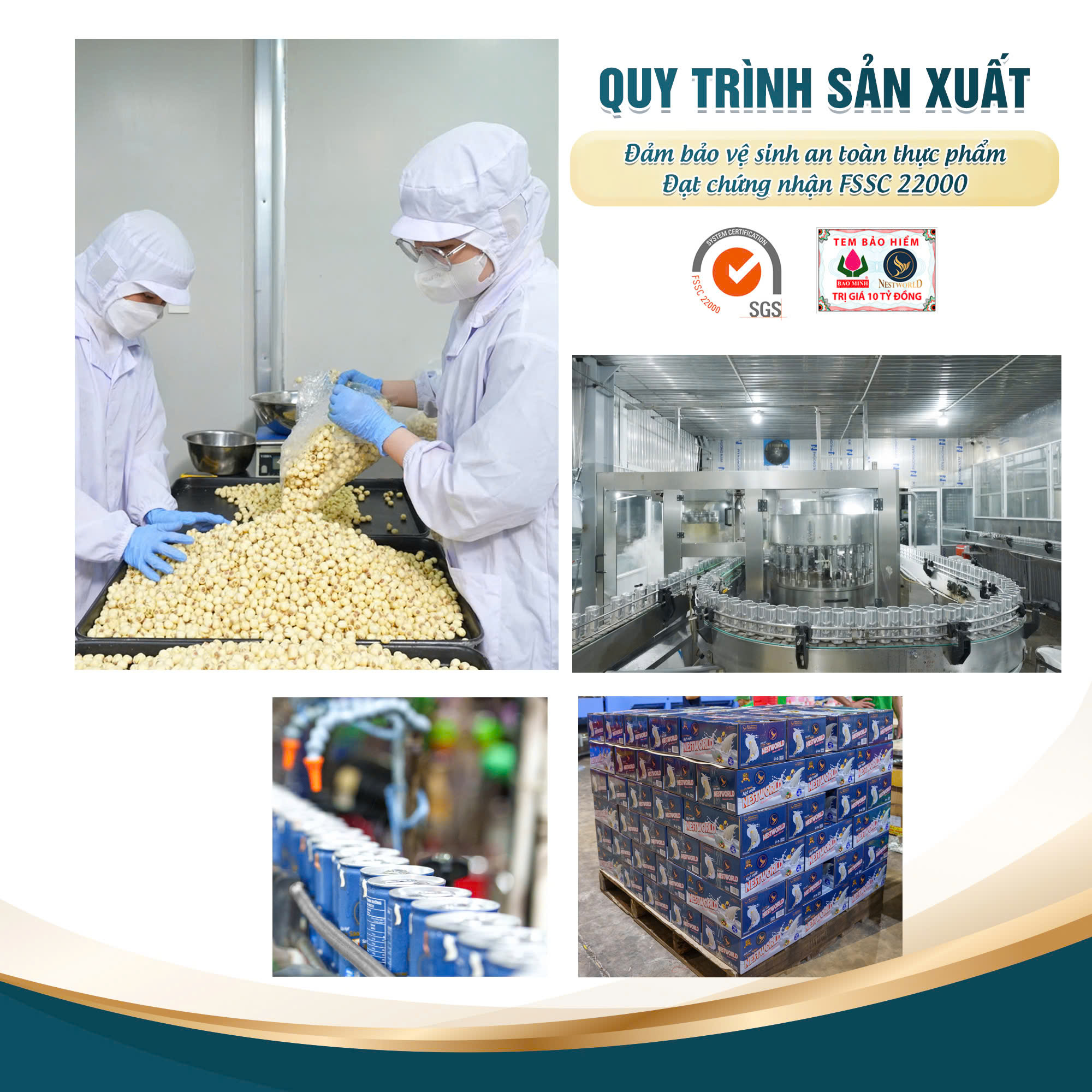 Sản phẩm được sản xuất trên hệ thống đạt chứng nhận quốc tế FSSC 22000 nhằm hạn chế các mối nguy trong sản xuất và chế biến thực phẩm.