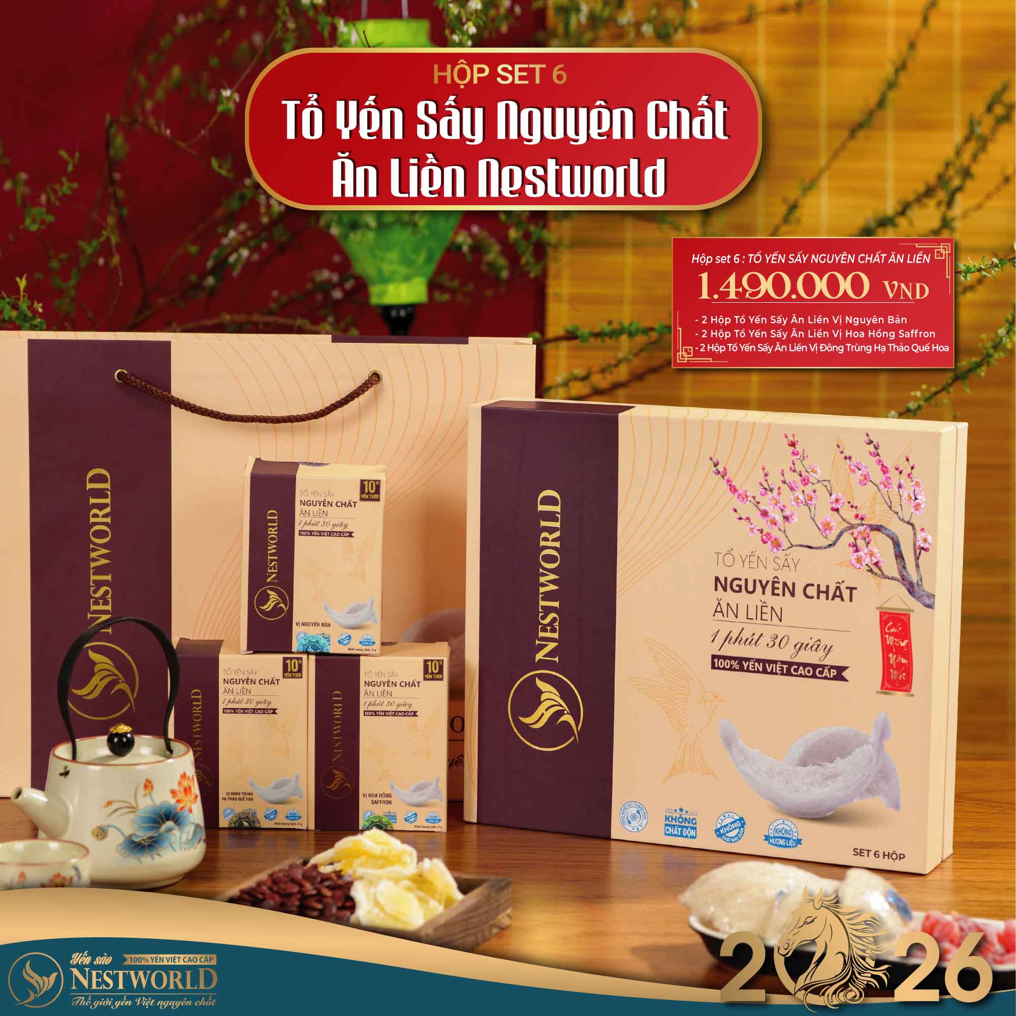 Trước thềm Tết Bính Ngọ 2026, Yến sào Nestworld cho ra mắt dòng sản phẩm chăm sóc sức khỏe với giao diện xuân mới rực rỡ, phù hợp cho mọi khách hàng có nhu cầu biếu tặng dịp đầu năm.