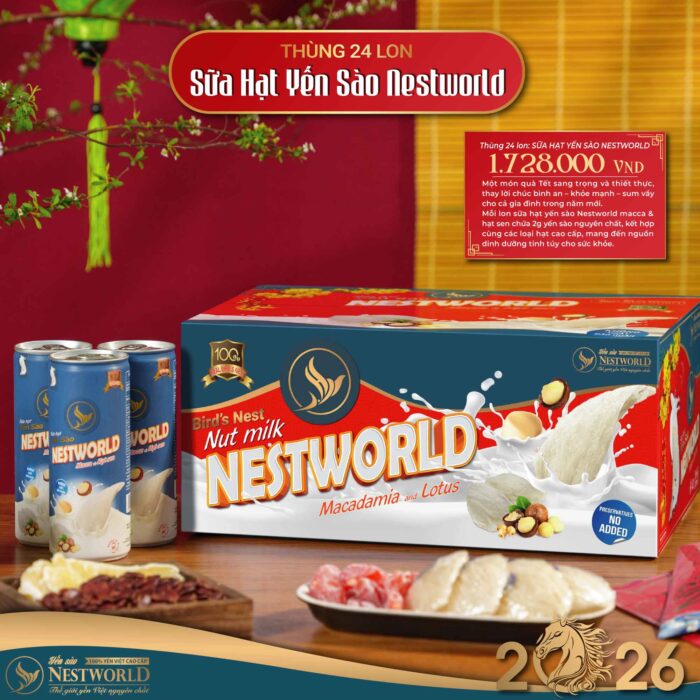 [Phiên bản 2026] – Thùng 24 Lon Sữa Hạt Yến Sào Nestworld Macca Và Hạt Sen