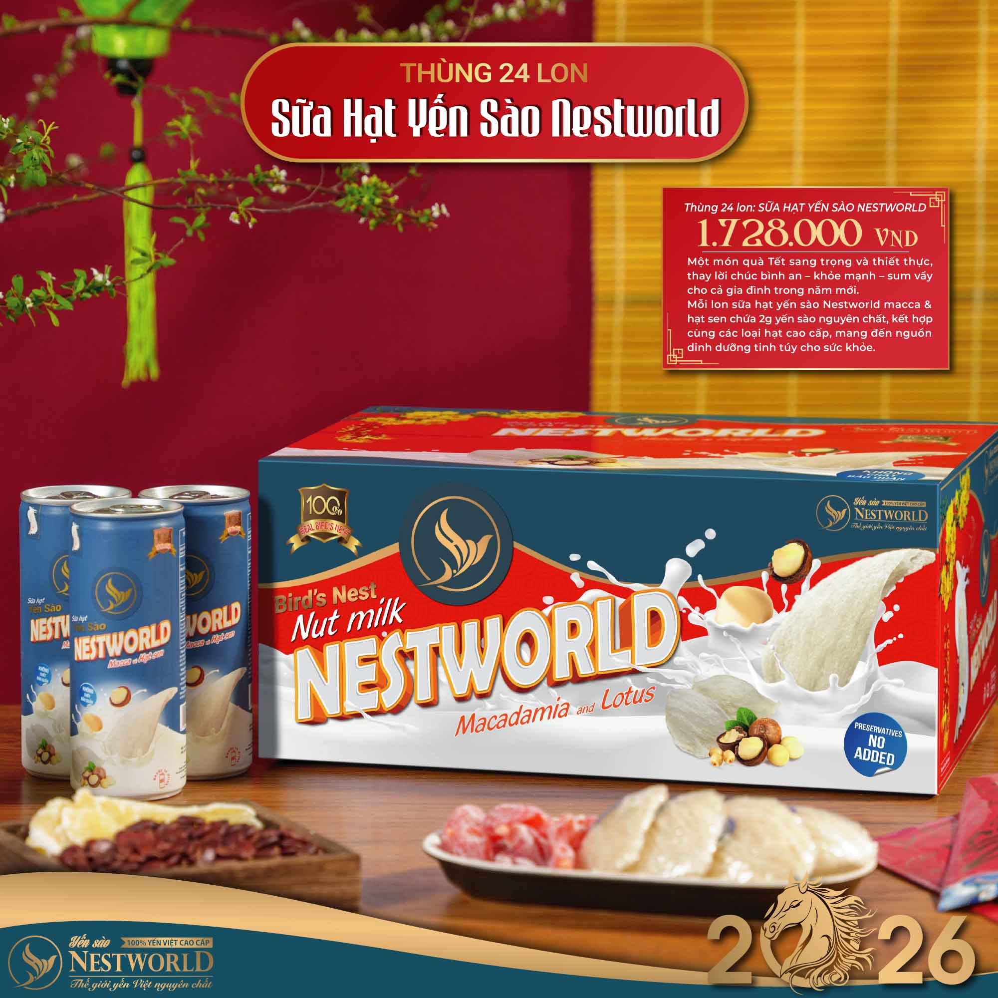 Trước thềm Tết Bính Ngọ 2026, Yến sào Nestworld cho ra mắt dòng sản phẩm chăm sóc sức khỏe với giao diện xuân mới rực rỡ, phù hợp cho mọi khách hàng có nhu cầu biếu tặng dịp đầu năm.