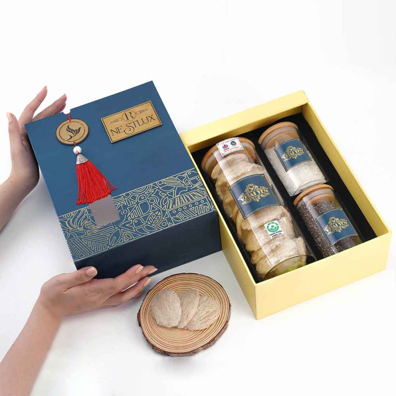 NESTLUX R được sơ chế từ tổ yến thô. Sau khi nhặt sạch lông và tạp chất, tiến hành ép khuôn tạo hình tổ yến và kéo sợi trên bề mặt. Sấy lạnh là công đoạn cuối cùng để hoàn thiện thành phẩm.