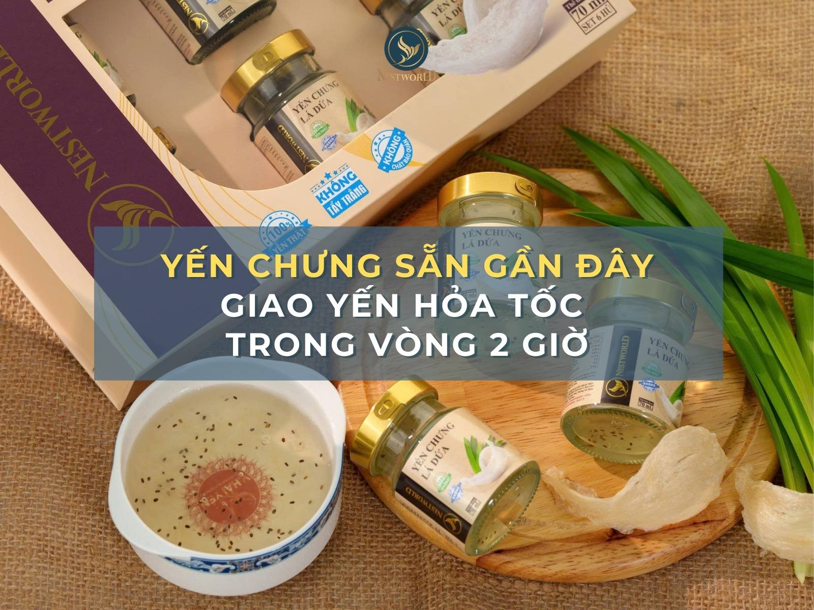 Đáp ứng nhu cầu mua yến chưng sẵn gần đây để dùng hoặc làm quà biếu tặng của nhiều khách hàng, Nestworld có dịch vụ giao hỏa tốc nội thành HCM trong vòng 2 giờ. Ngoài ra, nếu thuận tiện, khách hàng có thể đến mua yến chưng sẵn trực tiếp tại chi nhánh Nestworld hoặc đặt trực tuyến và được giao hàng nhanh trong ngày.