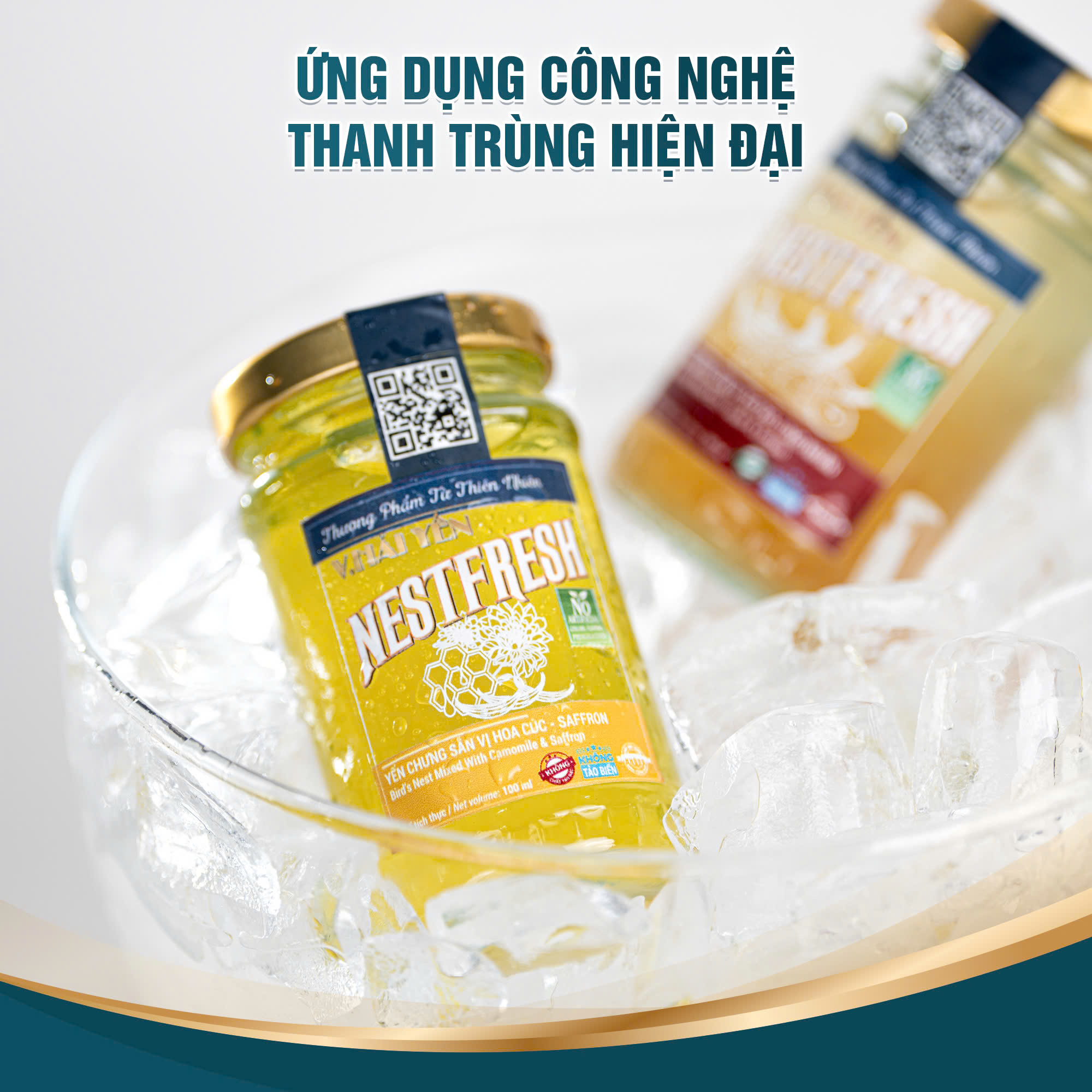 NESTFRESH vị Hoa cúc – Saffron là sản phẩm yến tươi chưng sẵn giữ lạnh. Mỗi hũ yến 100ml chứa đến 10g yến tươi nguyên chất.